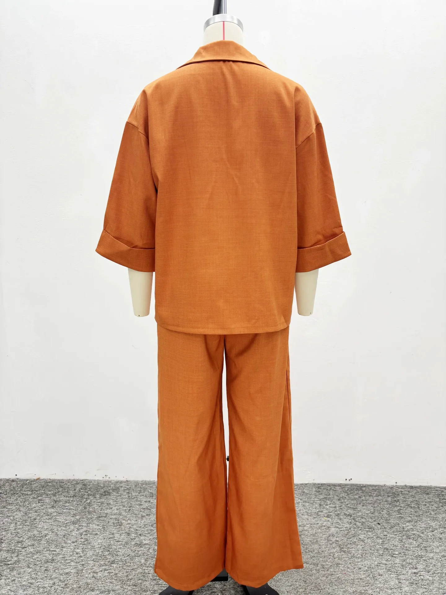 GX6372 Fashion Women Clothing Vendor Street Wear Sexy Half Sleeve Turn Down Jacket Top and Wide Leg Pant 2 Piece Set